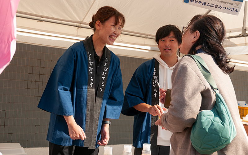 そうですね。来島海峡サービスエリアの「しまなみてらすMarket」というイベントでは、前日のテントの組み立てから始まり、当日はテントを立ち上げ、出店者様と一緒に準備をしたり、サポートを行います。お客様に商品を見ていただけるようお声がけもして、私がわかる範囲で商品のご説明をさせていただいたりもします。