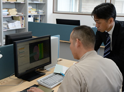 村上鉄工所は船の舵を作っている全国でも数社しかない会社の一つでかなりなシェアを持っています。実は父も村上鉄工所に勤めていました。小さいころからそれを見ていました。当時の社長、今の会長からお誘いがありました。そのころはあまりパソコンも普及しておらず、その分野で仕事をしてみないかと…。自分自身もまだパソコンを使ってなにかをすることはあまりなかったのですが、会社で新しいことができるということも魅力でした。特に今の社長は常に新しいことにチャレンジできるような雰囲気を作ってくれています。また非常にフレンドリーで、すごく働きやすい職場だと思います。